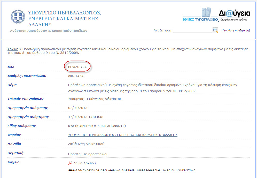 Με την απόφαση αυτή, εγκρίνεται για το έτος 2013, η καταβολή οικονομικών ενισχύσεων στους δικαιούχους του προγράμματος «Πρώτη Δάσωση γεωργικών γαιών» από τον Κρατικό Προϋπολογισμό.