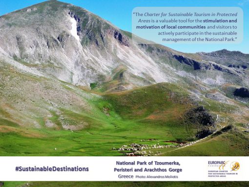 Στις 7 Δεκεμβρίου 2016, σε τελετή απονομής που έγινε στο Ευρωπαϊκό Κοινοβούλιο, βραβεύτηκε το Εθνικό Πάρκο Τζουμέρκων, Περιστερίου και χαράδρας Αράχθου ως Βιώσιμος Προορισμός