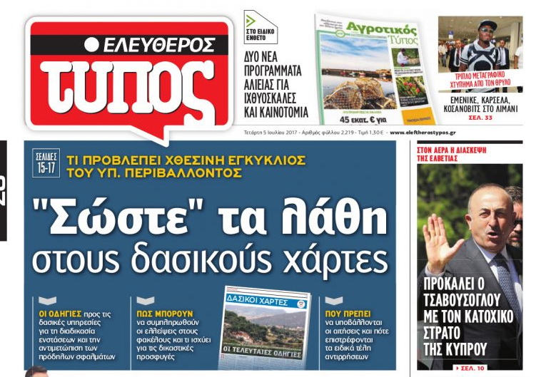 Στη νέα εγκύκλιο για τους δασικούς χάρτες που φέρει την υπογραφή του αρμόδιου υπουργού Σ. Φάμελλου αναφέρεται εκτενές ρεπορτάζ του Ελεύθερου Τύπου