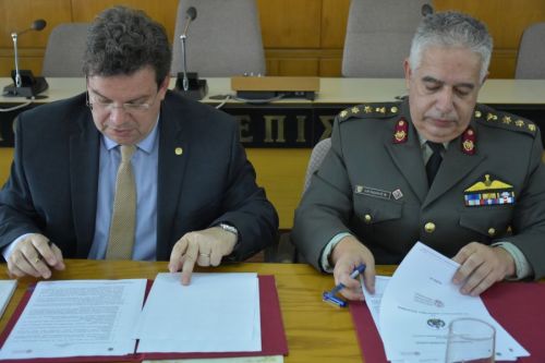 Μνημόνιο Συνεργασίας μεταξύ του Αριστοτέλειου Πανεπιστημίου Θεσσαλονίκης και της Γεωγραφικής Υπηρεσίας Στρατού (ΓΥΣ) υπέγραψαν ο Πρύτανης του ΑΠΘ, Καθηγητής Περικλής Α. Μήτκας, και ο Διοικητής της ΓΥΣ, Συνταγματάρχης Βαρδής Καγιαδάκης.