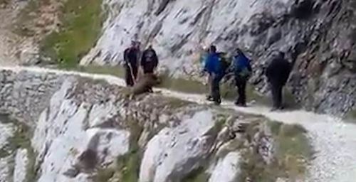 Οργή έχει προκαλέσει ένα βίντεο που δείχνει πεζοπόρους να ρίχνουν στο γκρεμό ένα αγριογούρουνο.