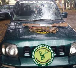 Οι θηροφύλακες στην συνέχεια ζήτησαν να αδειάσει την καραμπίνα και ο οδηγός έβγαλε από αυτή 5 φυσίγγια διαφόρων διαμετρημάτων, ενώ, αφού ενημερώθηκε ότι αυτό που έκανε ήταν παράνομο, αρνήθηκε να παραδώσει το κυνηγετικό του όπλο και εμφανώς εξαγριωμένος φώναζε να μην τον πλησιάσουν και ότι δεν δίνει τίποτα. Ύστερα δε από διάλογο έδωσε τα στοιχεία του στους θηροφύλακες, ενώ το όχημα ανήκει στον συνοδηγό του οχήματος που είχε πριν λίγο διαφύγει. Επίσης, στο όχημα διαπιστώθηκε ότι υπήρχε ακόμα ένας φορητός προβολέας, διάσπαρτα φυσίγγια διαφόρων διαμετρημάτων καθώς επίσης και ένας φορητός ασύρματος.