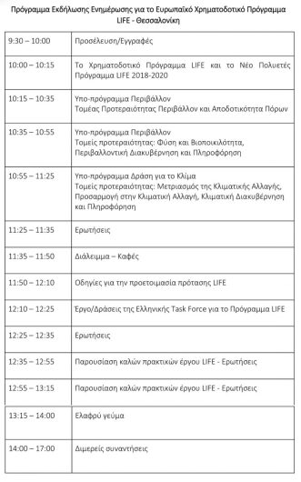 Η εκδήλωση διεξάγεται στο πλαίσιο ενημέρωσης, υποστήριξης και συμβουλευτικής των δυνητικών δικαιούχων του Ευρωπαϊκού χρηματοδοτικού Προγράμματος LIFE για το περιβάλλον και την κλιματική αλλαγή και χωρίζεται σε δύο μέρη. Το πρώτο μέρος έχει ενημερωτικό χαρακτήρα και θα διεξαχθεί στο Αμφιθέατρο Ι του ΚΕΔΕΑ ΑΠΘ, ενώ το δεύτερο μέρος διαθέτει συμβουλευτικό χαρακτήρα και θα πραγματοποιηθεί στον ημιώροφο του κτιρίου.