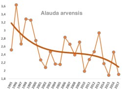 Στις αγροτικές περιοχές είδη όπως η σιταρήθρα (Alauda arvensis), ο θαμνοτσιροβάκος (Sylvia communis) ή ο βλάχος (Emberiza hortulana) τα τελευταία δεκαπέντε χρόνια μειώθηκαν κατά περίπου 1/3. Μάλιστα, ο πληθυσμός ενός μεταναστευτικού ωδικού πτηνού, της λιβαδοκελάδας (Anthus pratensis), έχει ελαττωθεί κατά 70%.
