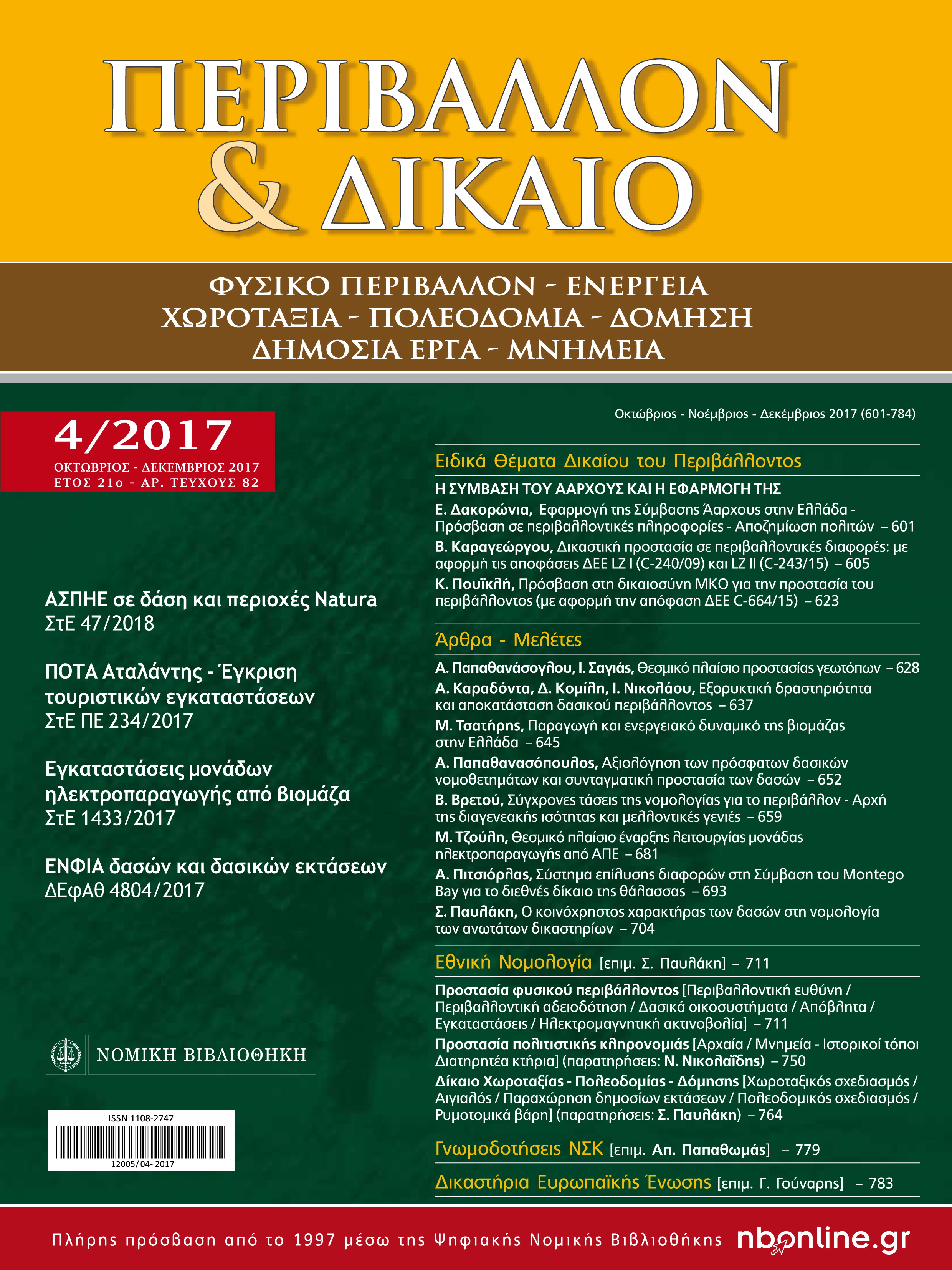 Κυκλοφορεί το νέο τεύχος του περιοδικού «ΠΕΡΙΒΑΛΛΟΝ & ΔΙΚΑΙΟ» με τα ακόλουθα θέματα: