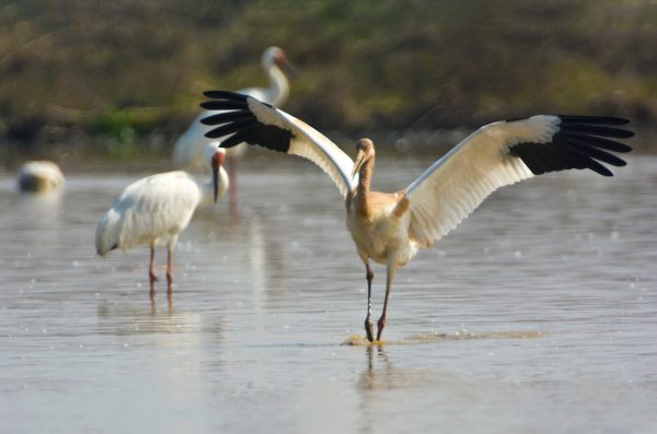 Οι λευκογερανοί της Σιβηρίας (Leucogeranus leucogeranus) κάνουν στάση στην περιοχή πριν συνεχίσουν τη μεγάλη μετανάστευσή τους, μια μακρά και δύσκολη περιπέτεια προς τη Σιβηρία. Στα τέλη Απριλίου, ο Λι κάνοντας τη συνηθισμένη του βόλτα κατά μήκος του ποταμού είδε ένα γερανό ακίνητο, μέσα στο νερό. Αμέσως βούτηξε να τον πιάσει.