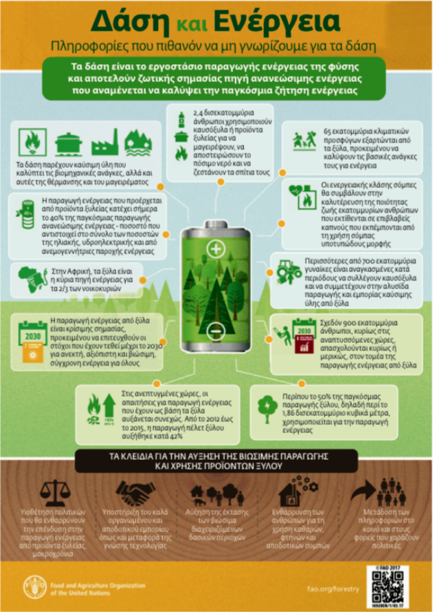 6. Σχεδόν εννιακόσια εκατομμύρια άνθρωποι, κυρίως στις αναπτυσσόμενες χώρες, ασχολούνται ή εμπλέκονται με την παραγωγή ξυλοκάρβουνου ή ξυλάνθρακα. Περίπου 2,4 δισεκατομμύρια άνθρωποι σε παγκόσμιο επίπεδο, δηλαδή ένας στους τρεις, χρησιμοποιούν ξύλα για να ετοιμάσουν το γεύμα τους, αναδεικνύοντας έτσι την ενέργεια που προέρχεται από ξύλα στον κυριότερο παράγοντα εξασφάλισης της επισιτιστικής ασφάλειας και διατροφής. Η παραγωγή ενέργειας που προέρχεται από προϊόντα ξυλείας, κατέχει σήμερα το 40% της παγκόσμιας παραγωγής ανανεώσιμης ενέργειας -ποσοστό που αντιστοιχεί στο σύνολο των ποσοστών της ηλιακής, υδροηλεκτρικής και από ανεμογεννήτριες παροχή ενέργειας. Το ποσοστό αναμένεται να εμφανίσει ακόμη μεγαλύτερη άνοδο, καθώς η ζήτηση για βιοενέργεια συνεχώς αυξάνεται.