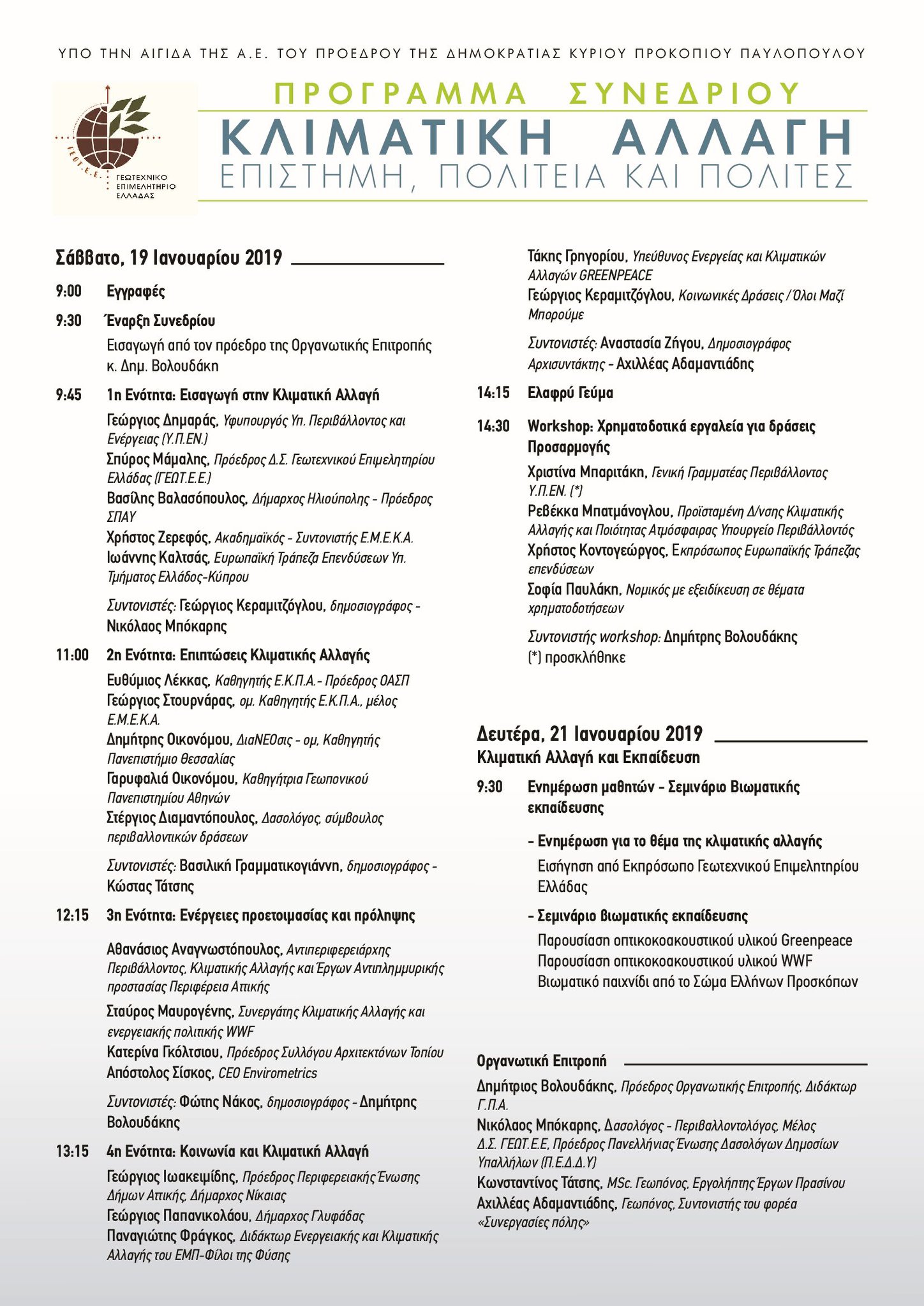 Το Γεωτεχνικό Επιμελητήριο Ελλάδας (ΓΕΩΤ.Ε.Ε.) ως σύμβουλος της Πολιτείας σε θέματα περιβάλλοντος και δασών, γεωργίας, αλιείας, κτηνοτροφίας, υδάτινων πόρων, διοργανώνει Συνέδριο με θέμα «Κλιματική Αλλαγή, Επιστήμη, Πολιτεία και Πολίτες» υπό την Αιγίδα της Α.Ε του Προέδρου της Δημοκρατίας κυρίου Προκοπίου Παυλόπουλου.