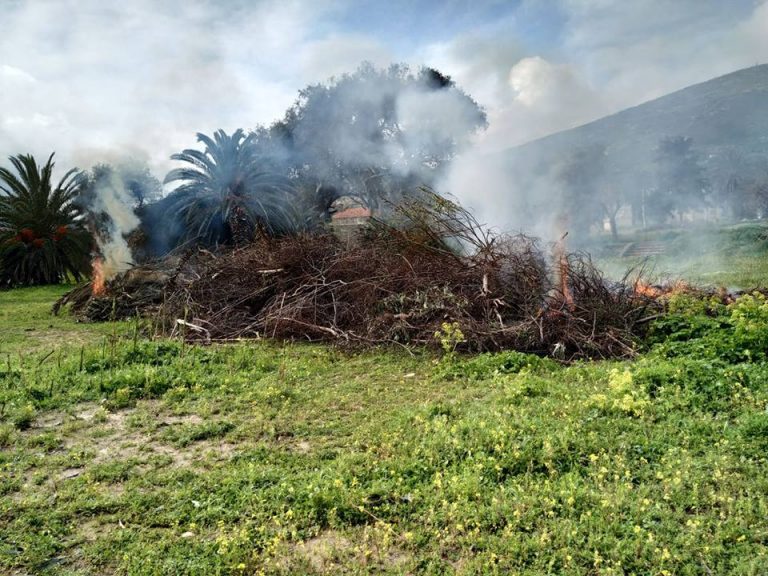 Καύση ξερών κλαδιών που συλλέχτηκαν από τους ωφελούμενους του Προγράμματος Κοινωφελούς εργασίας (παρουσία της Πυροσβεστικής Υπηρεσίας Σύρου)