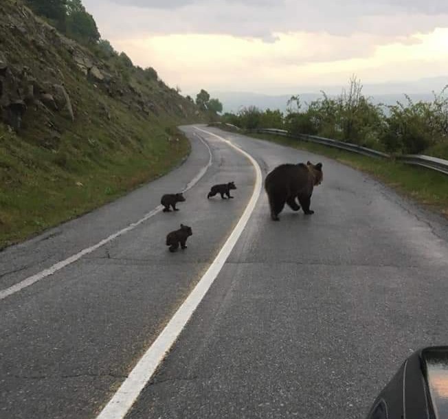 Tο γύρο του διαδικτύου κάνει η τρυφερή φωτογραφία με τη μαμά αρκούδα να διασχίζει τον δρόμο με τα παιδιά – αρκουδάκια της.