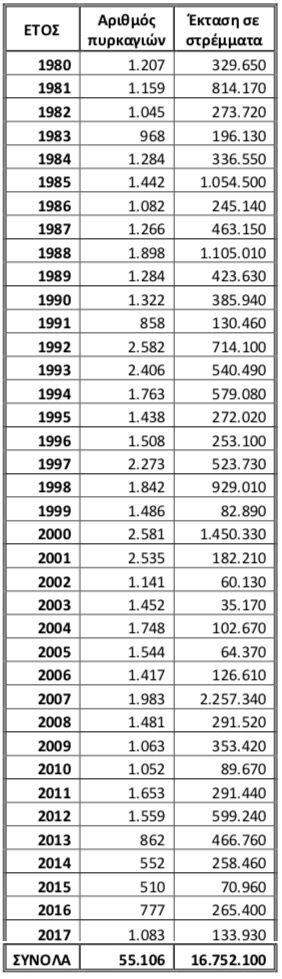 ΠΙΝΑΚΑΣ ΔΑΣΙΚΩΝ ΠΥΡΚΑΓΙΩΝ ΕΛΛΑΔΑΣ 1980-2017 (EFFIS)