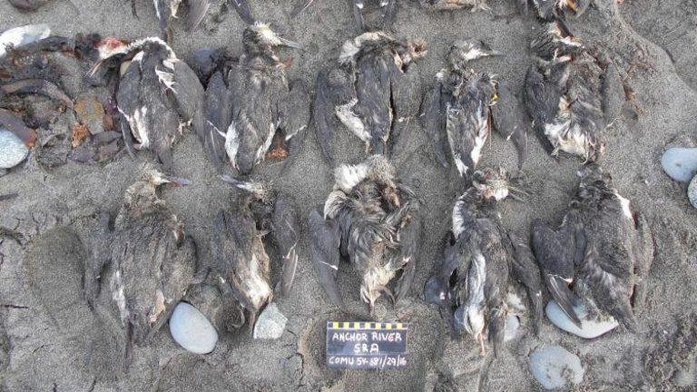 Περίπου 62.000 πτηνά (το είδος της κοινής άλκας) ξεβράστηκαν στις ακτές του Ειρηνικού Ωκεανού, ωστόσο, σύμφωνα με τους επιστήμονες, ο αριθμός των νεκρών πουλιών πιστεύεται πως άγγιζε το ένα εκατομμύριο.