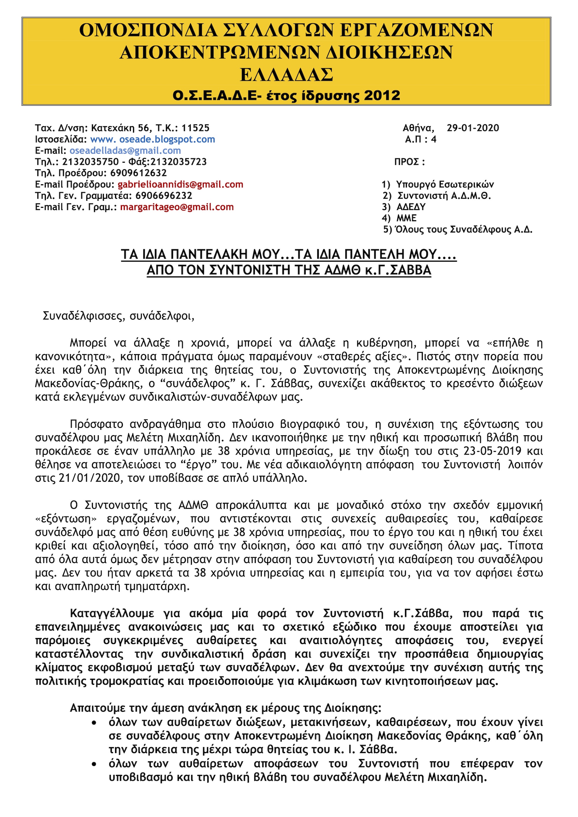 Δελτίο τύπου της Δημοκρατικής Αγωνιστικής Συνεργασίας ΑΔΑ By dasarxeio com on 07/02/2020 • ( 0 ) Share on Facebook(Ανοίγει σε νέο παράθυρο) Facebook Share on X(Ανοίγει σε νέο παράθυρο) X Share on LinkedIn(Ανοίγει σε νέο παράθυρο) LinkedIn Share on Pinterest(Ανοίγει σε νέο παράθυρο) Pinterest Email a link to a friend(Ανοίγει σε νέο παράθυρο) Email Μου αρέσει αυτό:Like Φόρτωση... Related ‹ Πώς έφτασε στην Ελλάδα η αφρικανική πανώλη των χοίρων;Διαχείριση του Εθνικού Δρυμού Σαμαριάς με πρωτοβουλία της Αποκεντρωμένης Διοίκησης Κρήτης ›Categories: ΕπικαιρότηταTags: Αποκεντρωμένη Διοίκηση Μακεδονίας - Θράκης, Δημοκρατική Αγωνιστική Συνεργασία, ΟΣΕΑΔΕ