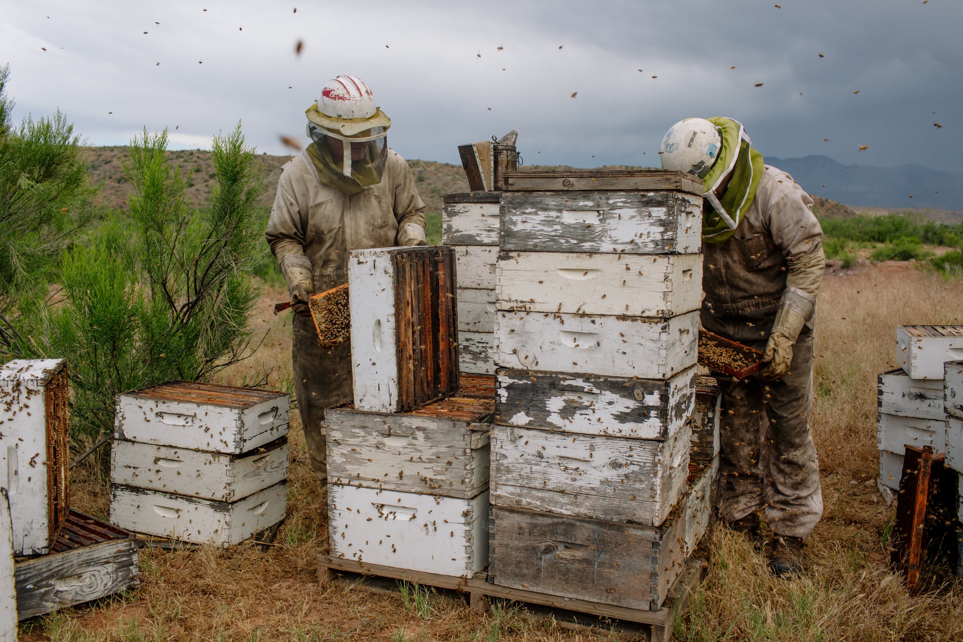 «Η αυλή μου είναι γεμάτη με άδεια μελίσσια, που κάποτε φιλοξενούσαν υγιείς πληθυσμούς μελισσών, λέει ο Ντένις Αρπ, ένας μελισσοκόμος που, όπως και πολύ συνάδελφοί του, εξασφαλίζουν σχεδόν το μισό εισόδημά τους από την ενοικίαση των μελισσών τους για την επικονίαση αμυγδαλιών.