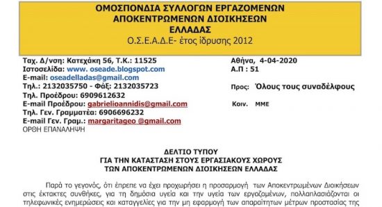 ΟΣΕΑΔΕ: Για την κατάσταση στους εργασιακούς χώρους των Αποκεντρωμένων Διοικήσεων dasarxeio com 6 έτη ago Share on Facebook(Ανοίγει σε νέο παράθυρο) Facebook Share on X(Ανοίγει σε νέο παράθυρο) X Share on LinkedIn(Ανοίγει σε νέο παράθυρο) LinkedIn Share on Pinterest(Ανοίγει σε νέο παράθυρο) Pinterest Email a link to a friend(Ανοίγει σε νέο παράθυρο) Email Ανακοίνωση Συντονιστών Αποκεντρωμένων Διοικήσεων για το προεδρείο της ΟΣΕΑΔΕΗμερομηνία20/03/2020In relation toΕπικαιρότηταΟΣΕΑΔΕ: Απάντηση στην ανακοίνωση των 5 συντονιστώνΗμερομηνία30/03/2020In relation toΕπικαιρότηταΟΣΕΑΔΕ: Ανακοίνωση – καταγγελία για Συντονιστή Α.Δ.Μ.Θ.Ημερομηνία01/07/2020In relation toΕπικαιρότητα