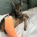 Μόλις λίγων ημερών ζαρκάδι, με κομμάτια ακόμη στο σώμα του από τον ομφάλιο λώρο, βρέθηκε με σπασμένο το πόδι στο Πάικο