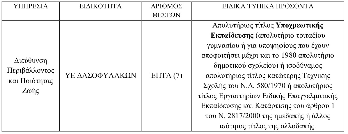 Ο Δήμος Ωραιοκάστρου ανακοινώνει την πρόσληψη, με σύμβαση εργασίας ιδιωτικού δικαίου ορισμένου χρόνου, επτά (07) ατόμων, ειδικότητας «ΥΕ Δασοφυλάκων» διάρκειας τριών (3) μηνών από 01-06-2020 έως 31-08-2020 για την κάλυψη επειγουσών, εποχικών και πρόσκαιρων αναγκών για την προστασία του δασοκτήματος για το έτος 2020 του Δήμου Ωραιοκάστρου.