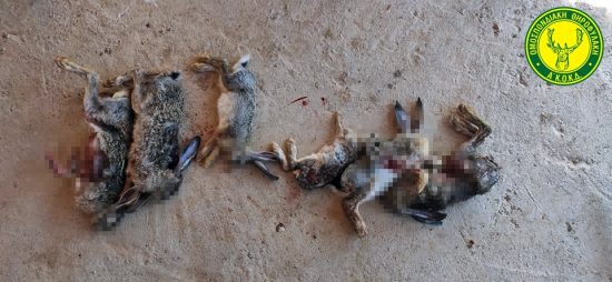 Κατά την άφιξη των θηροφυλάκων, εντοπίστηκαν δυο άτομα με δέκα σκυλιά να επιστρέφουν στο κατάλυμα που υπάρχει στο νησί. Κατά τον έλεγχο που τους έγινε βρέθηκε να κατέχουν έξι λαγούς πιασμένους και θανατωμένους από τα σκυλιά τους.
