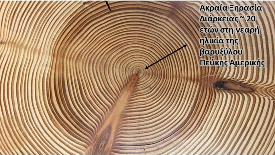 Φυσικά αρχεία ετήσιων δακτυλίων δασικών δένδρων και προσδιορισμός ακραίων ξηρασιών από τις χρονοσειρές τους