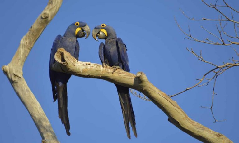 Το αγρόκτημα Fazenda São Francisco do Perigara, στο Μάτο Γκρόσο, έχει γίνει το βασικό καταφύγιο για τον υάκινθο μακάο, το εντυπωσιακό μπλε πουλί, κατά τα τελευταία χρόνια. Όπως μεταδίδει ο Guardian από τους 6.500 υακίνθους μακάο που ζουν στην άγρια φύση περίπου 700 έχουν καταφύγει στα δέντρα του συγκεκριμένου αγροκτήματος.