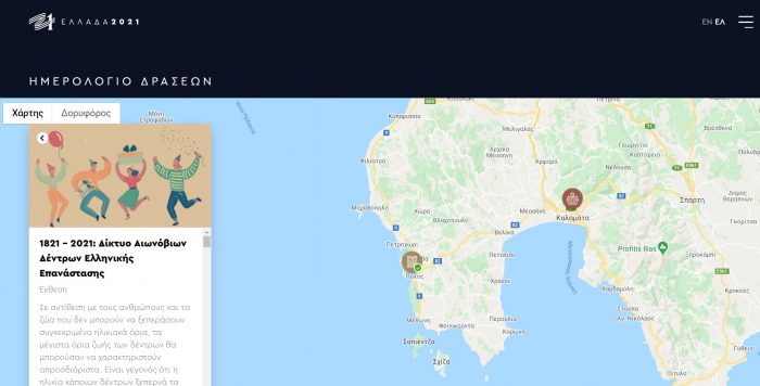 Στο επίσημο πρόγραμμα δράσεων της Επιτροπής «Ελλάδα 2021» εντάχθηκε το επετειακό project του Ινστιτούτου Πολιτισμού Μεσσηνίας με τίτλο «Δίκτυο Αιωνόβιων Δέντρων Ελληνικής Επανάστασης». Πρόκειται για την πρώτη επετειακή έκθεση του νομού Μεσσηνίας που εντάσσεται στο Ημερολόγιο Δράσεων της Επιτροπής «Ελλάδα 2021» ενώ παράλληλα, το project παρουσιάζεται στο διαδραστικό χάρτη που έχει δημιουργήσει η Επιτροπή στην ηλεκτρονική της σελίδα (https://www.greece2021.gr/map). Σκοπός της Επιτροπής «Ελλάδα 2021» έτσι είναι, πέρα από τον σχεδιασμό του εμβληματικού εορτασμού της συμβολικής επετείου των 200 χρόνων από την Ελληνική Επανάσταση, να συντονίσει ένα συνολικό πρόγραμμα δράσεων και εκδηλώσεων, με στόχο να επανασυστήσει την Ελλάδα, από την αρχή της σύγχρονης ιστορίας της μέχρι και σήμερα.