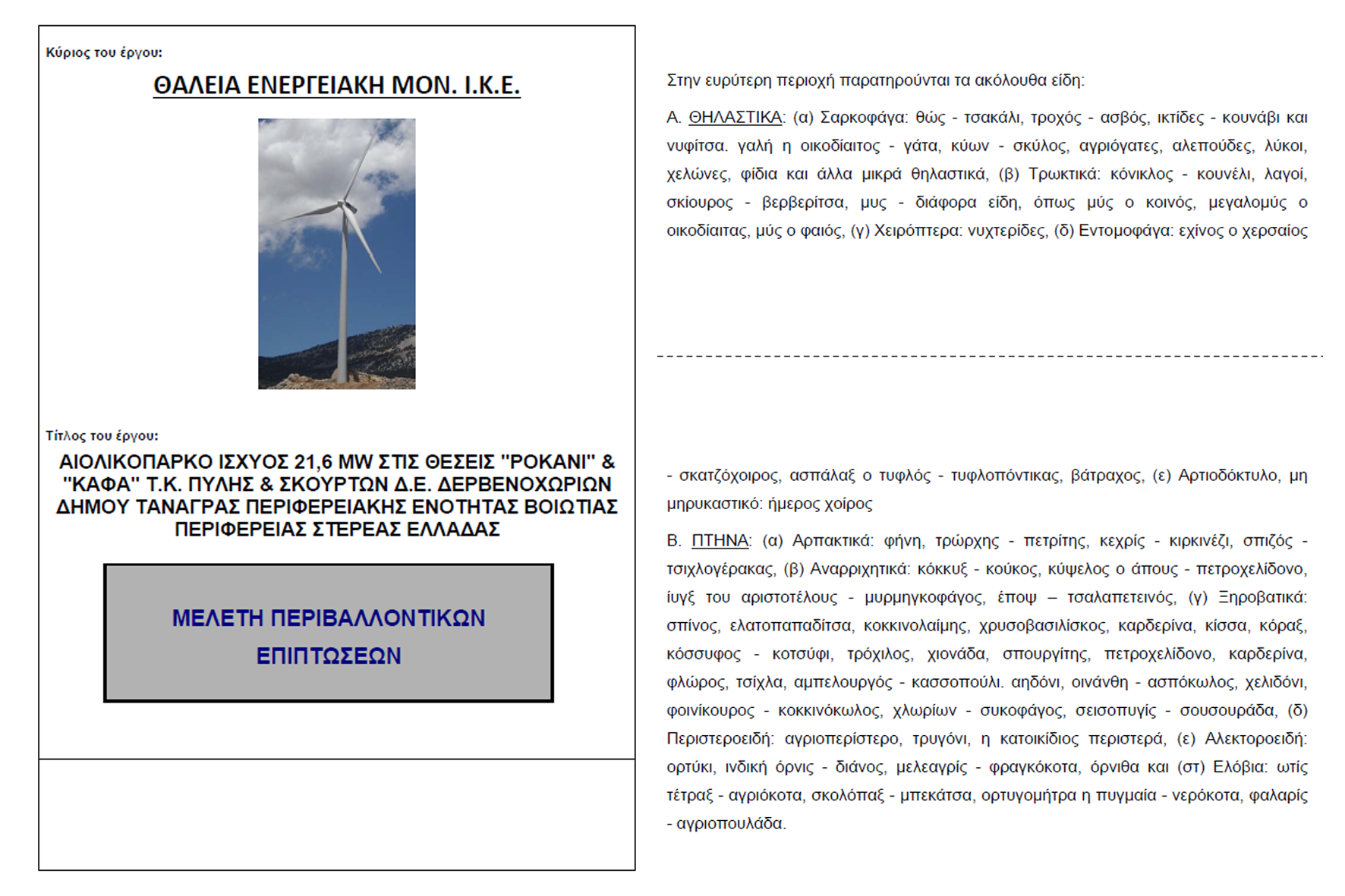 - Σε τέσσερις ΜΠΕ για Αιολικούς Σταθμούς (ΑΣΠΗΕ), που σχεδιάζονται σε διαφορετικές περιοχές της Βοιωτίας, υπάρχει η πα-νο-μοι-ό-τυ-πη καταχώρηση για την πανίδα (περιλαμβανομένων των πουλιών), έτσι ώστε ακόμα και οι λανθασμένες ονομασίες να παραμένουν ίδιες! Όσο για την ποιότητα συλλογής των δεδομένων, αυτό το αφήνουμε στην κρίση του καθενός…