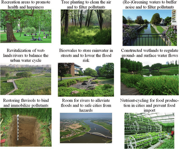 Τέτοιες λύσεις δημιουργούν αρμονικά περιβάλλοντα μέσω τοπικά προσαρμοσμένων, αποδοτικών πόρων και συστημικών παρεμβάσεων. Οι πρακτικές τους βοηθούν στην αύξηση της βιοποικιλότητας, στην απορρόφηση του διοξειδίου του άνθρακα, συνεισφέρουν στην κλιματική ισορροπία, βοηθούν στην ορθή διαχείριση φυσικών πόρων, προσφέρουν φυσική αποκατάσταση ενώ παράλληλα εγκαθιστούν πράσινη αναβάθμιση στα αστικά τοπία.