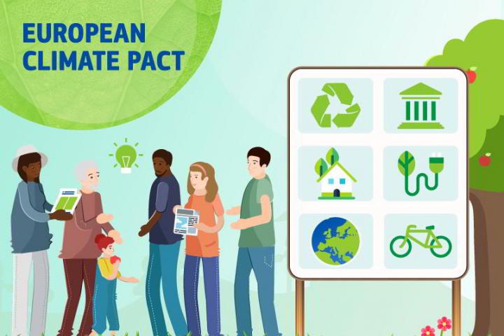 Το Ευρωπαϊκό Σύμφωνο για το Κλίμα παρέχει έναν χώρο σε ανθρώπους από όλα τα κοινωνικά στρώματα για να έρθουν σε επαφή, να αναπτύξουν συλλογικά και να εφαρμόσουν κλιματικές λύσεις, μεγάλες και μικρές. Ανταλλάσσοντας ιδέες και έμπνευση μεταξύ μας, μπορούμε να πολλαπλασιάσουμε τον συλλογικό μας αντίκτυπο. Το Σύμφωνο είναι μια ανοικτή, πολυδεκτική και εξελισσόμενη πρωτοβουλία κλιματικής δράσης. Καλεί τις περιφέρειες, τις τοπικές κοινότητες, τη βιομηχανία, τα σχολεία και την κοινωνία των πολιτών να ανταλλάσσουν πληροφορίες σχετικά με την κλιματική αλλαγή και την υποβάθμιση του περιβάλλοντος, και σχετικά με τους τρόπους με τους οποίους μπορούν να αντιμετωπιστούν αυτές οι υπαρξιακές απειλές. Μέσω μιας διαδικτυακής πλατφόρμας και μέσω διαλόγου και ανταλλαγής απόψεων μεταξύ των πολιτών, το Σύμφωνο θα υποστηρίξει τη σύνδεση μεταξύ της ψηφιακής και της πράσινης μετάβασης.