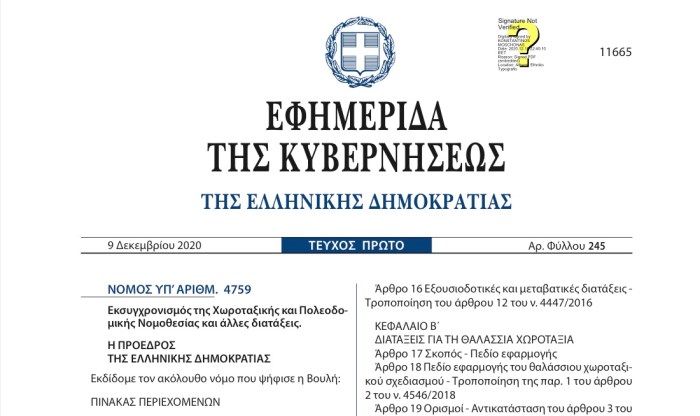 Ν. 4759/2020 Εκσυγχρονισμός της Χωροταξικής και Πολεοδομικής Νομοθεσίας και άλλες διατάξεις