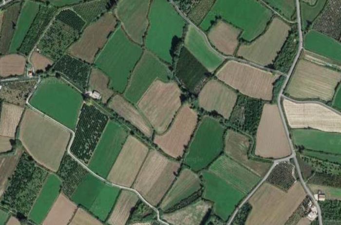 Περιοχή Αιτωλοακαρνανίας (Καλύβια, Δυτ. Αγρινίου) με σχετικά αναπτυγμένους φυτοφράχτες στα αγροκτήματα (Google).