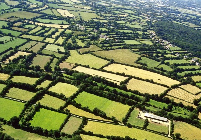 Αεροφωτοφραφία, αγροτοπίου με δίκτυο φυτοφραχτών, Αγγλία.