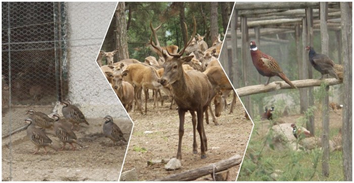 Τα θηράματα που εκτρέφονται κατά κύριο λόγο είναι α) Υβρίδιο Κολχικού Φασιανού (Phasianus colhicus colhicus) β) Πέρδικες Τσούκαρ (Alectoris chukar) γ) Ελάφια (Cervus elaphus).
