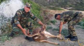 Οι δασοφύλακες, αμέσως μόλις ενημερώθηκαν από κάτοικο της περιοχής, έσπευσαν στο σημείο όπου και εντόπισαν το ελάφι. Μέσα σε λίγα λεπτά κατάφεραν να το απεγκλωβίσουν με επιτυχία και αφού διαπίστωσαν ότι δεν αντιμετώπιζε κάποιο πρόβλημα τραυματισμού, το άφησαν να επιστρέψει στο φυσικό του περιβάλλον.