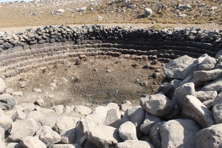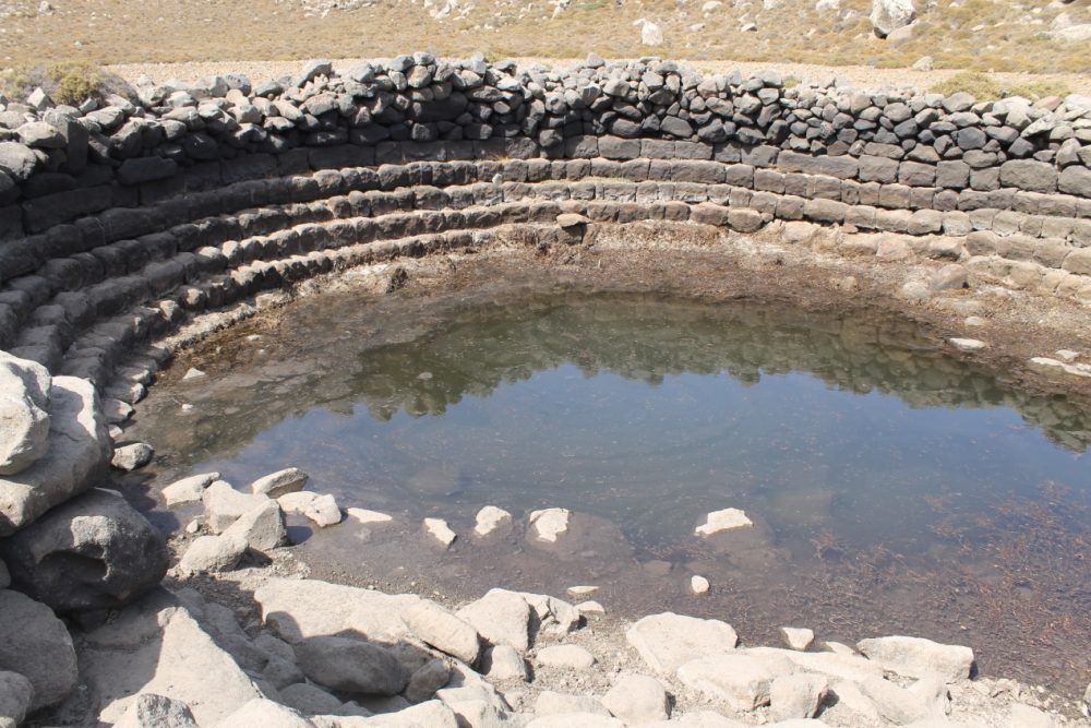 Η ομβροδεξαμενή στη νήσο Αντίμηλο απ’ όπου ποτίζονται οι αίγαγροι, την ημέρα που έγινε η αυτοψία (26.8.2021)