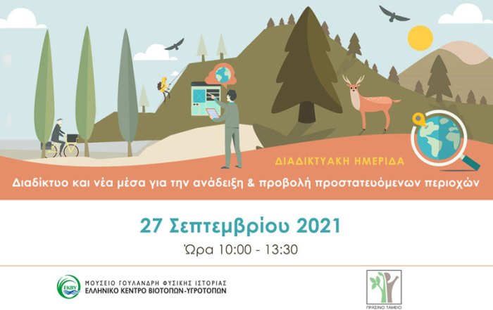 Η δυναμική του διαδικτύου και των νέων μέσων (μέσα κοινωνικής δικτύωσης, ψηφιακές εφαρμογές, εφαρμογές εικονικής και επαυξημένης πραγματικότητας κ.ά.) για την προβολή και ανάδειξη περιοχών ιδιαίτερου φυσικού και πολιτιστικού ενδιαφέροντος, αποτελεί αντικείμενο της ημερίδας «Διαδίκτυο και νέα μέσα για την προβολή και ανάδειξη προστατευόμενων περιοχών» που θα πραγματοποιηθεί διαδικτυακά, τη Δευτέρα 27 Σεπτεμβρίου 2021 (10.00 – 13.30).