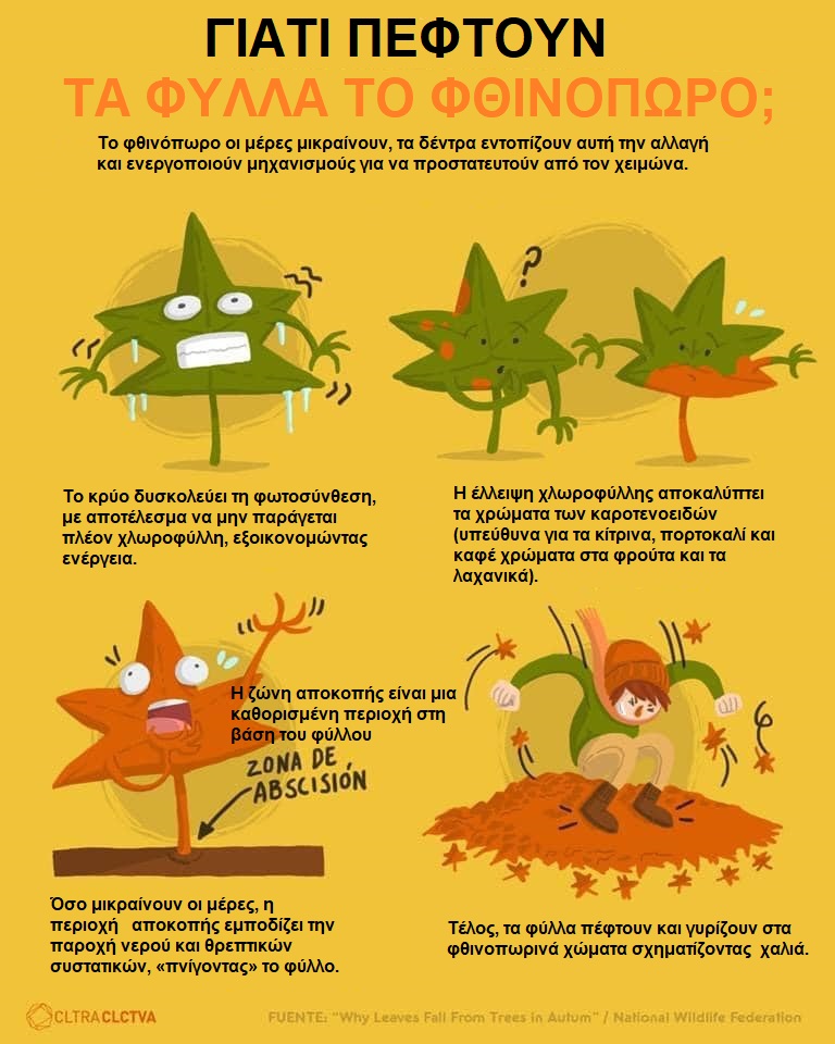 Έτσι, όλη την περίοδο της άνοιξης και του καλοκαιριού τα δέντρα αναπτύσσονται, η χλωροφύλλη «λειτουργεί», τα φύλλα γίνονται πράσινα. Τι συμβαίνει όμως το φθινόπωρο;