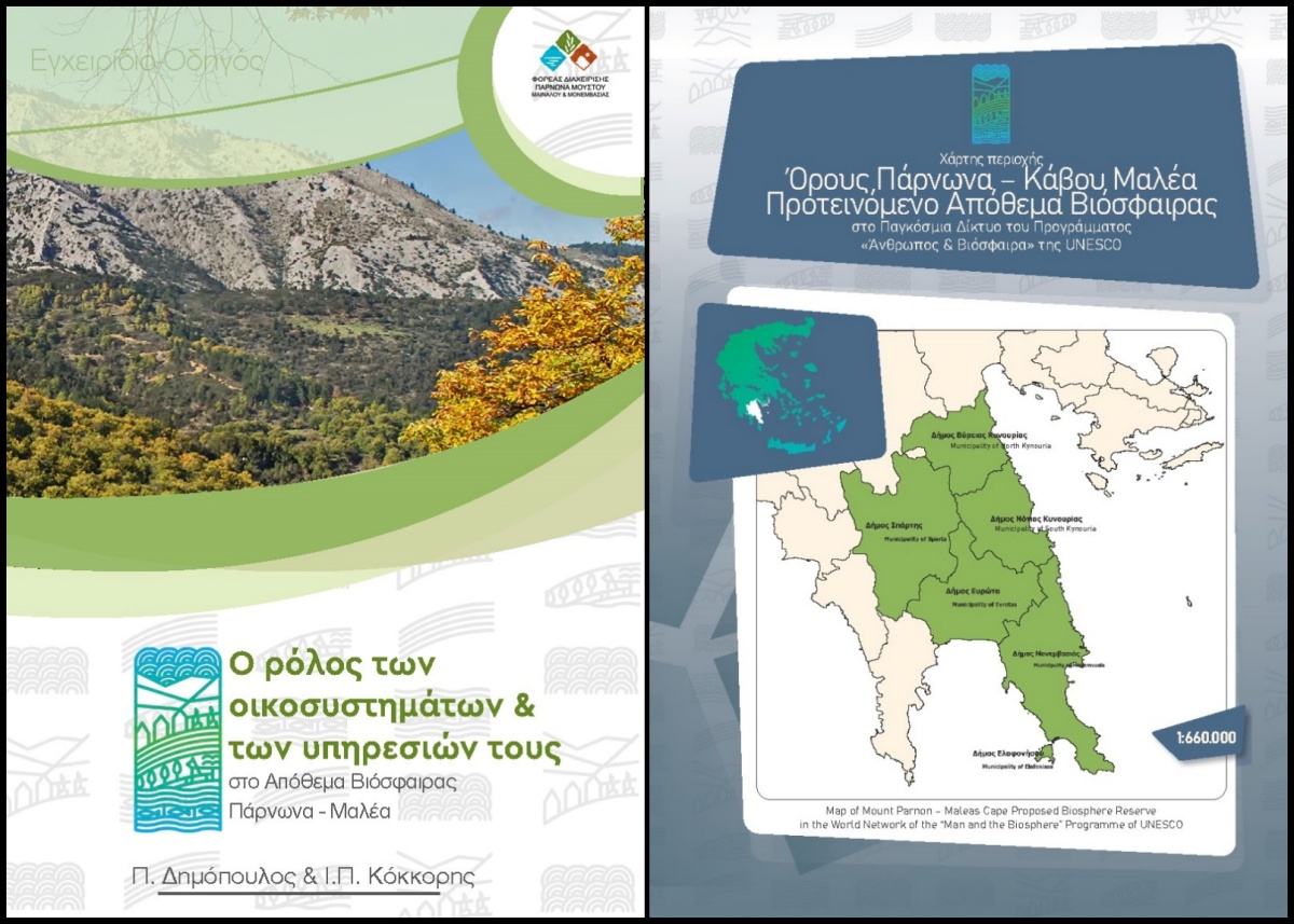 Το εγχειρίδιο – οδηγός με τίτλο «Ο ρόλος των οικοσυστημάτων και των υπηρεσιών τους στο Απόθεμα Βιόσφαιρας Πάρνωνα-Μαλέα», αποτελεί μέρος της προσπάθειας της Ελλάδας να υλοποιήσει τη Δράση Χαρτογράφησης και Αξιολόγησης των Οικοσυστημάτων και των Υπηρεσιών τους με τον καλύτερο δυνατόν τρόπο, προσφέροντας στον αναγνώστη τα κυρίαρχα στοιχεία των οικοσυστημάτων της περιοχής του Αποθέματος Βιόσφαιρας Πάρνωνα-Μαλέα, καθώς και των παρεχόμενων ή δυνητικά παρεχόμενων οικοσυστημικών τους υπηρεσιών.