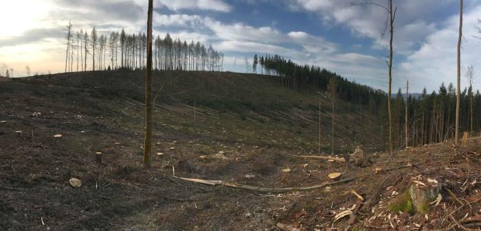 Ωστόσο, δεν νεκρώθηκαν από φυσικά αίτια όλες οι κατεστραμμένες δασικές εκτάσεις. Έχουν επίσης υποστεί υλοτομία έκτακτης ανάγκης μεγάλης κλίμακας. «Συχνά, το κόψιμο των δέντρων είναι το μέτρο της τελευταίας λύσης για να σταματήσει η εξάπλωση σοβαρών προσβολών από παράσιτα», εξήγησε το κέντρο.