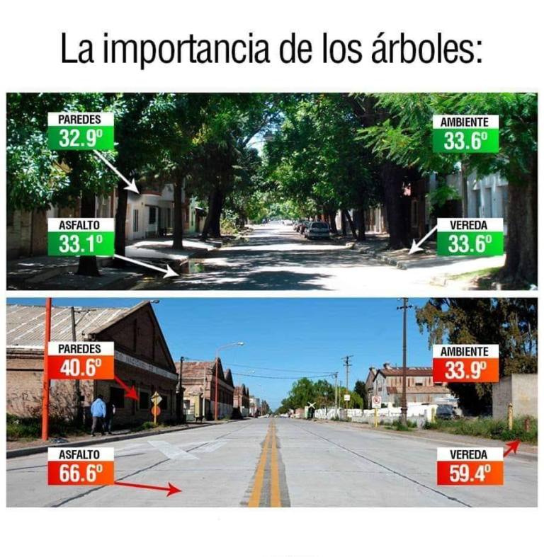 Με δορυφορικές εικόνες, μια μελέτη του πανεπιστημίου FAUBA στο CABA (Αργεντινή) βρήκε, για την ίδια στιγμή, θερμικές διαφορές έως και 23 °C μεταξύ βόρεια και νότια του Μπουένος Άιρες. Μία από τις αιτίες είναι η διαφορετική ποσότητα βλάστησης σε κάθε ζώνη. Από αυτό τονίζουν την