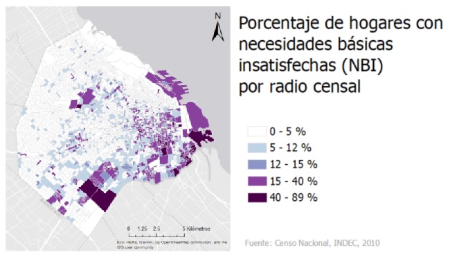 Η Paula Galansino δήλωσε ότι σε πολλές πόλεις σε όλο τον κόσμο, η πρόσβαση σε χώρους πρασίνου συνδέεται με το επίπεδο εισοδήματος και ότι αυτή η τάση εμφανίζεται και στην CABA. «Διαπίστωσα ότι οι γειτονιές με το υψηλότερο ποσοστό νοικοκυριών με ανεκπλήρωτες βασικές ανάγκες, κυρίως στο κέντρο-νότο της πόλης, έχουν τη λιγότερη έκταση με βλάστηση και αντιμετωπίζουν υψηλότερες θερμοκρασίες. Για να αποκτήσω αυτά τα αποτελέσματα, συμβουλεύτηκα τον δείκτη μη ικανοποιημένων βασικών αναγκών του INDEC, ο οποίος παρέχει πληροφορίες για τα χαρακτηριστικά των νοικοκυριών, όπως η πρόσβασή τους σε βασικές υπηρεσίες όπως νερό, ηλεκτρισμό και αποχέτευση, και για τους κατοίκους τους, όπως οι δραστηριότητες που πραγματοποιούν μεταξύ άλλων θεμάτων». Τα κύματα καύσωνα έχουν κοινές συνέπειες για τους κατοίκους των πόλεων, αλλά δεν τους επηρεάζουν όλους εξίσου. «Οι υψηλές θερμοκρασίες μπορούν να προκαλέσουν προβλήματα υγείας. Οι άνθρωποι αυξάνουν την κατανάλωση ενέργειας για να ψύξουν ή να αερίσουν τα σπίτια τους και αυτό έχει δύο άκρα. Πρώτον, ότι η υπερβολική ζήτηση ρεύματος προκαλεί διακοπές ρεύματος και δεύτερον, ότι οι ηλεκτρικές συσκευές ή οι αξίες των λογαριασμών δεν είναι προσβάσιμες σε όλους», είπε η απόφοιτος.