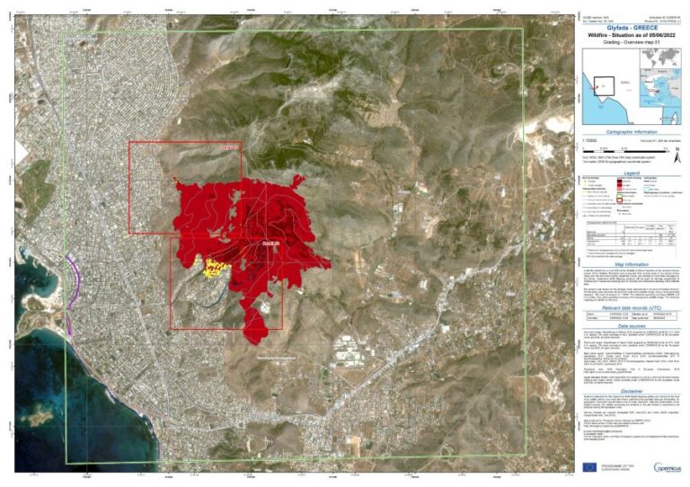 Στο πλαίσιο υποστήριξης του έργου των φορέων πολιτικής προστασίας που εμπλέκονται στην αντιμετώπιση εκτάκτων αναγκών και διαχείριση των συνεπειών που προέκυψαν από την εκδήλωση των πυρκαγιών σε περιοχές του όρους Υμηττού, στις 4 Ιουνίου 2022, η Δ/νση Σχεδιασμού και Αντιμετώπισης Εκτάκτων Αναγκών της ΓΓΠΠ, κατόπιν σχετικής εντολής του του Γενικού Γραμματέα Πολιτικής Προστασίας, ζήτησε την ενεργοποίηση της υπηρεσίας Copernicus/Emergency Management Service – Rapid Mapping της Ευρωπαϊκής Ένωσης, με σκοπό την παραγωγή χαρτογραφικών προϊόντων και δεδομένων για τις πληγείσες περιοχές.