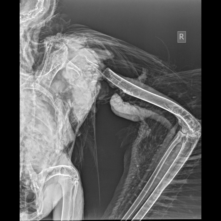 Ακτινογραφία του νεκρού μαυρόγυπα με ακρωτηριασμένη τη δεξιά φτερούγα