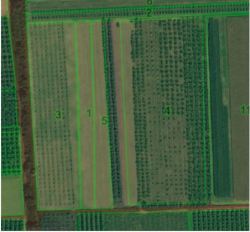 Εικόνα 2: Τα τεμάχια με α/α 1 έχουν και μόνιμη και αρόσιμη καλλιέργεια. Προτείνεται να σπάσουν σε δύο διακριτά τεμάχια έκαστος, όπου το καθένα θα περιέχει μία καλλιέργεια.