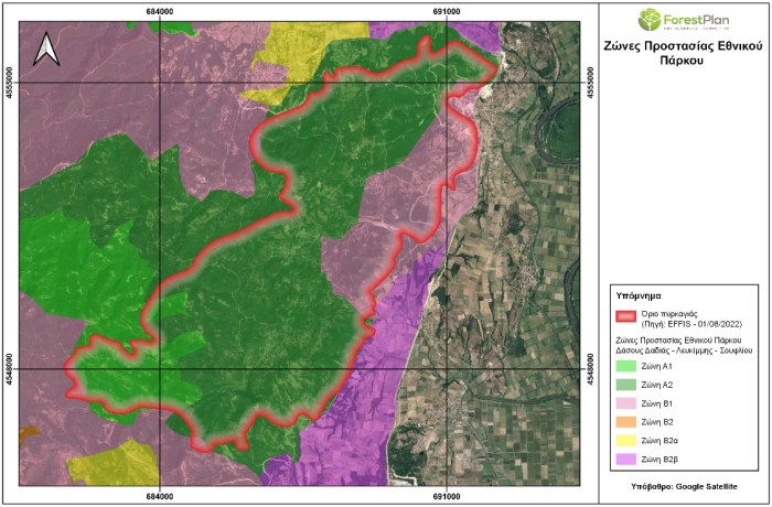 Εικόνα 1: Ζώνες Προστασίας του Εθνικού Πάρκου Δάσους Δαδιάς – Λευκίμης – Σουφλίου (ΦΕΚ 911/Δ/2006, Πηγή: geodata.gov.gr)