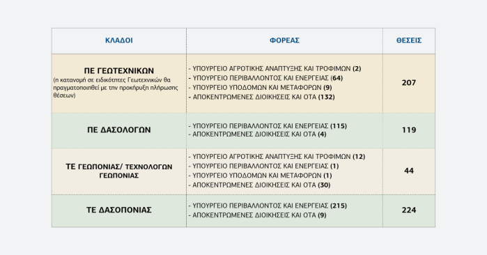 | ΚΛΑΔΟΙ ΤΕ | ΦΟΡΕΙΣ | ΘΕΣΕΙΣ |