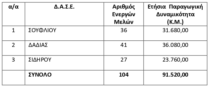 Σύμφωνα με την σχετική απόφαση που υπογράφει ο Γενικός Γραμματέας Δασών, η Ετήσια Παραγωγική Δυναμικότητα κάθε ΔΑ.Σ.Ε. φαίνεται στους παρακάτω πίνακες: