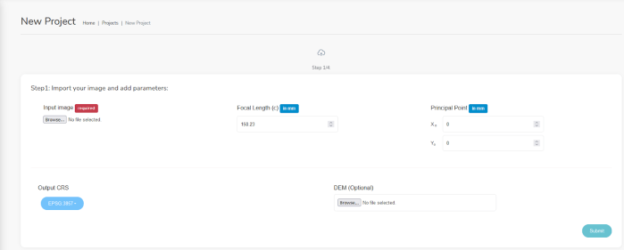 - Παραμέτρους εσωτερικού προσανατολισμού: σταθερά μηχανής c, συντεταγμένες πρωτεύοντος σημείου xO, yO (Απαιτούνται)