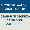 Η Διεύθυνση Δασών Νομού Δωδεκάνησου της Ε.Ε.Δ.Π. Αιγαίου θα διενεργήσει άμεσα προσλήψεις εποχικού προσωπικού σχέσης εργασίας ΙΔΟΧ για τέσσερις (4) υπαλλήλους του κλάδου ΠΕ Δασολόγων και τέσσερις (4) υπαλλήλους του κλάδου ΤΕ Δασοπόνων με απασχόληση έως οκτώ (8) μήνες