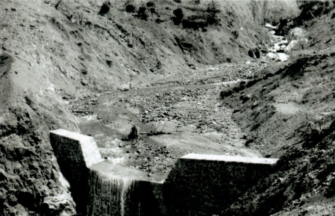 Εγκάρσια φράγματα σε συμβάλλοντα Κερασιάς (εικ. 1). Πέτρινο κτίριο στη θέση «Μπαλάνου» – εργοτάξιο διευθέτησης χειμάρρου Παμίσου (εικ. 2).