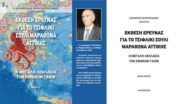 Ο συγγραφέας Ελευθέριος Φραγκιουδάκης, Δασολόγος – Ερευνητής, διαθέτει σπάνια πείρα και άριστη εποπτεία ενός ογκώδους και πολυδιάστατου αρχειακού υλικού, έχοντας διατελέσει, μεταξύ άλλων, τα τελευταία δύο έτη ενεργού υπηρεσίας στο Δημόσιο, προϊστάμενος της Γενικής Διεύθυνσης Ανάπτυξης και Προστασίας Δασών και Φυσικού Περιβάλλοντος στο Υπουργείο Αγροτικής Ανάπτυξης και Τροφίμων. Η παρούσα μελέτη του, βασισμένη σε σπάνια ντοκουμέντα, χάρτες, συμβολαιογραφικά έγγραφα που βλέπουν για πρώτη φορά το φως της δημοσιότητας, καθώς και στο εκάστοτε ισχύον νομικό καθεστώς, καταδεικνύει πώς και οι τρεις συντεταγμένες εξουσίες: νομοθετική, εκτελεστική και δικαστική, αφενός αγνόησαν -και εξακολουθούν να αγνοούν- τη Σύμβαση του 1835, μεταξύ Ελλάδας – Τουρκίας, η οποία αποτέλεσε οιονεί παράρτημα της Συνθήκης Ανεξαρτησίας της Ελλάδας, αυξημένης μάλιστα τυπικής ισχύος, και αφετέρου συνέδραμαν, ώστε οι νέοι τσιφλικάδες του Νεοελληνικού κράτους να συμπεριφέρονται, από διαχειριστές και χρήστες γαιών, ως κύριοι και ιδιοκτήτες τους.